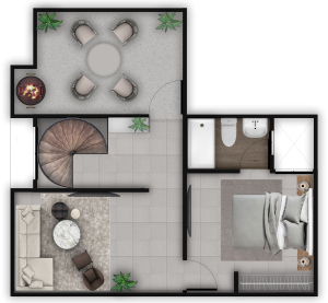 • 58 Metros (4to) mas 35.56 metros adicionales (5to) distribuidos en 1 Habitación con su baño y una sala de estar, mas 12.27mts de terraza destechada